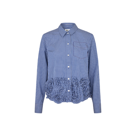 Mariel-skjorten er fremstillet i sprød økologisk bomuldspoplin, der giver et let og behageligt udtryk. Skjorten har en løs pasform, som falder flot og komfortabelt, kombineret med klassisk krave og knaplukning for et tidløst look. Det unikke flæsedesign formet som rosetter langs sømmen tilfører et dekorativt og feminint element, mens en diskret pyntlomme skabt med dekorative syninger fuldender designet. En alsidig skjorte, der nemt kan styles med både jeans, nederdel eller skræddersyede bukser.