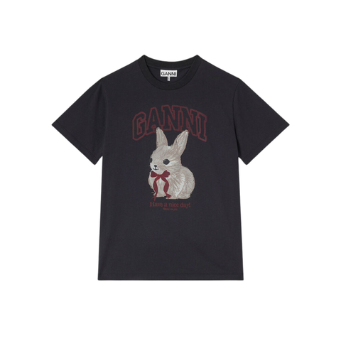 Denne grå t-shirt fra GANNI er afslappet og cool med sit grafiske dyre-print og klassiske rundhalsudskæring. Den fremstår enkel men markant — perfekt til hverdagsbrug eller som en del af et street-stil outfit. Den løse pasform og bløde økologiske bomuld gør t-shirten behagelig at have på, mens printet og logoet giver dit look personlighed. Brug den med jeans og sneakers for en afslappet vibe, eller med en skindjakke og støvler for lidt kant.