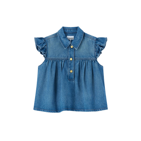 Giv din garderobe et elegant og moderne twist med denne lyse denimtop fra Ganni. Toppen er designet i en letvægts denimkvalitet, der føles behagelig mod huden og giver et afslappet, men samtidig raffineret udtryk. Den tidløse, lyse blå farve og den feminine silhuet gør den perfekt til både hverdagslooks og mere stilfulde outfits, uanset om du kombinerer den med jeans for et tone-i-tone sæt eller med nederdel for et mere dresset udtryk. Den er skabt med fokus på komfort og kvalitet, så du får en top, der både kan styles op og ned og varer sæson efter sæson.