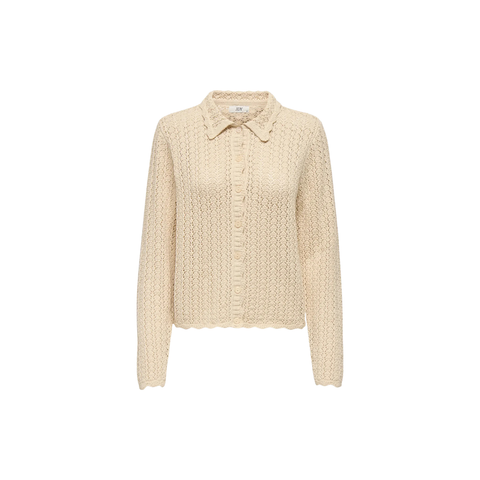 CAMIL LS Collar Cardigan fra JDY er en let og feminin strik med fint hulmønster, lille krave og knaplukning, der giver et diskret vintage-look. Den har en løstsiddende pasform, lange ærmer og bølget kant forneden, som fremhæver det feminine udtryk. Blød og behagelig at have på – nem at style både åben og lukket til hverdag og mere pæne outfits.
