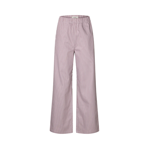Stilrene wide leg bukser med mid waist og elastisk talje, der sikrer en behagelig og fleksibel pasform hele dagen. De praktiske forlommer og det løstsiddende snit giver et moderne look, der nemt kan styles til både hverdag og mere elegante anledninger.