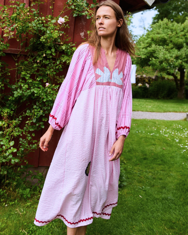 Sissel Edelbo started its story in 2004, is a new brand in Prinsesse2ben. Their playful approach to colors and patterns helps create the feminine look in every garment or accessory they make. Sissel Edelbo often uses recycled textiles to give used textiles new life and make their production more sustainable. This means that many of their styles are one-of-a-kind and therefore completely unique. We handpick most of Sissel Edelbo's items to create the best presentation for us and our customers. Some of our handpicked styles are available exclusively in our physical store. In addition to their unique products, Sissel Edelbo is also known for their blouses with ties, and their jackets and vests with beautiful embroidery details. Sissel Edelbo's jackets in all kinds of embroidery, patterns, patchwork and colors, which can be used both indoors and outdoors, help put the finishing touch on every outfit. In addition, Sissel Edelbo is also known for their silk kimonos and their unique vests with wooden buttons or belts in recycled fabrics. There is free shipping on all styles from Sissel Edelbo. We receive news from Sissel Edelbo several times a year. We hold two annual Sissel Edelbo sales both online and in store. See our selection of styles from Sissel Edelbo here, and find your next favorite.