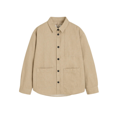 A casual work-wear inspired shirt. The shirt is made of twill and has a ribbed feel to it and features two large patch front pockets and a single chest pocket. At the back, the shirt has a light yoke and each cuff can be closed with a button.