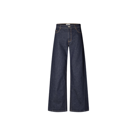 These NO.03 jeans from Baum und Pferdgarten have a high waist and wide-leg fit, creating a relaxed and modern silhouette. The classic denim in organic cotton with a touch of stretch provides both comfort and structure, while the timeless 5-pocket design and slightly twisted hem at the front add a subtle, stylish touch. The jeans are perfect as a wardrobe staple — wear them with sneakers and a t-shirt for everyday wear or with a blazer and heels for a more elegant look.
