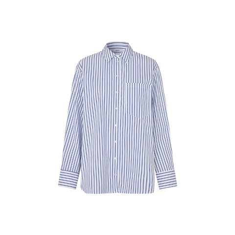 Langærmet skjorte i en klassisk navy pinstripe med et afslappet og moderne udtryk. Designet med gennemgående knaplukning, manchetter med knapper og en praktisk brystlomme. Skjorten har bærestykke i nakken, som giver en flot pasform, og er fremstillet i en let elastisk bomuldsblanding for ekstra komfort.