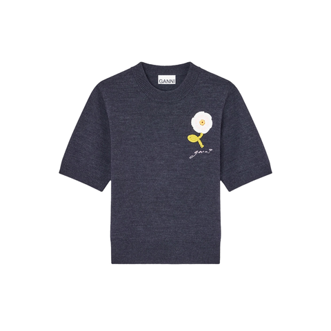 Ganni Crochet Applique Merino Tee