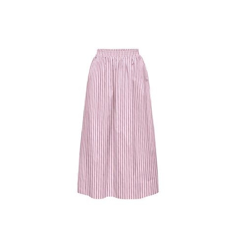 Udtryk din personlige stil med dette flotte midi-nederdel, der er ideel til både arbejde, byture og bylivet generelt. Nederdelen har et højt liv, som giver en flatterende pasform, og den praktiske længde sikrer både komfort og elegance. Med vævede stoffer, der er skabt ved at væve to eller flere garn sammen, får nederdelen et tidløst udtryk, som passer til forskellige anledninger. De diskrete sidelommer tilføjer et funktionelt element uden at gå på kompromis med designet. Farven chalk pink giver et blødt og feminint præg, der passer godt ind i forårets garderobe.