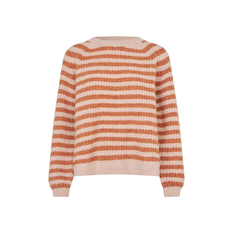 BinaLL strik er tilbage – denne gang også i en smuk, blød rustfarve. Sweateren er fremstillet i en blød kvalitet med klassisk ribstruktur og vandrette striber. Den har et afslappet og tidløst udtryk med raglanærmer og brede ribkanter ved hals, ærmer og søm. Den løse pasform gør den nem at style både over skjorter og kjoler. Blød ribstrikket sweater med raglanærmer og brede ribkanter.