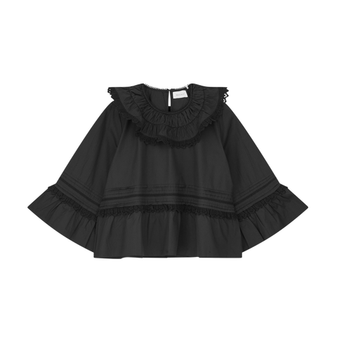 Lulu blusen fra Skall Studio – en elegant og feminint detalje i din garderobe. Denne smukke bluse er designet med fine ruffle-detaljer omkring halsudskæringen, der tilføjer et sofistikeret touch, samtidig med at den har en afslappet pasform, som er perfekt til både hverdag og mere festlige anledninger. Den tidløse sorte farve gør den nem at style med både bukser, nederdele eller jeans. Lavet i 100% bomuld, der sikrer komfort og holdbarhed. Tilføj et strejf af elegance til din stil med Lulu blusen.