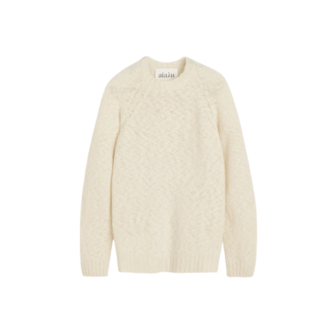 Denne Aiayu Toba Sweater i den naturlige Pure Ecru-farve er en tidløs strik, der fusionerer luksuriøs blødhed med moderne minimalisme. Strikken er fremstillet i en let, luftig uldkvalitet, som skaber en subtil struktur og en let transparent effekt, der løfter looket uden at gå på kompromis med komforten. Designet har en afslappet pasform med raglanærmer og ribkanter, som giver et ubesværet og sofistikeret udtryk – perfekt til både lag-på-lag styling og som en elegant base i din garderobe. Materialet i sin naturlige tone afspejler Aiayus fokus på rene, ufarvede fibre, som tillader hver enkelt trøje at have sin egen unikke variation og karakter.