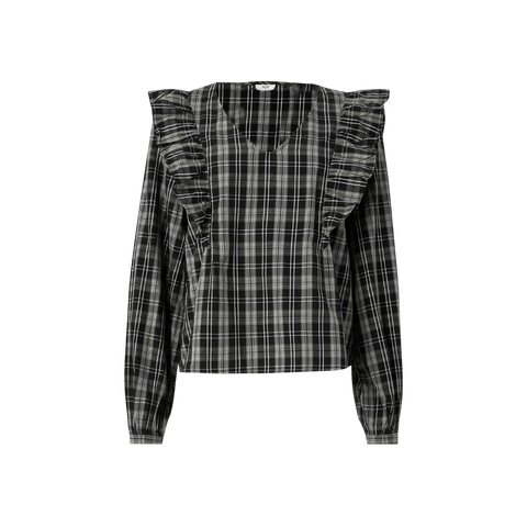 Denne smukke ternede bluse kombinerer et klassisk mønster med et moderne, feminint udtryk. Blusen fås i to flotte varianter – en bordeaux ternet og en grøn ternet version – begge i harmoniske farvetoner, der giver et tidløst og alsidigt look.