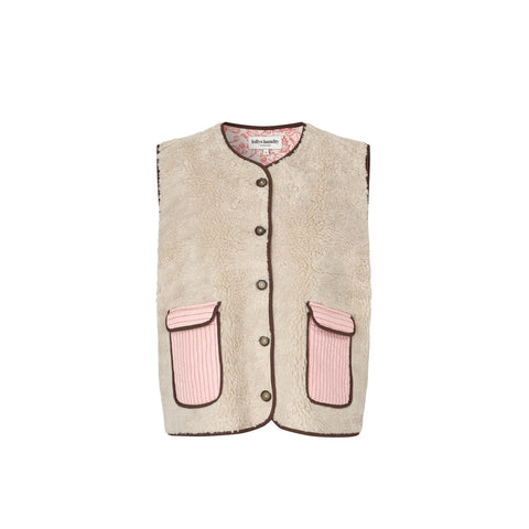 En smuk beige vest med broderede detaljer, der tilføjer et elegant og unikt udtryk. Vesten er ærmeløs og har et stribet vævemønster, som bidrager til dens stilfulde og moderne udseende. Med en højde og længde på 60 cm i størrelse XL passer den godt til voksne kvinder og tilbyder en dejlig balance mellem pasform og komfort. Let i vægt med kun 0,37 kg, er den ideel til sæsonen 2026. Et fint valg for dem, der ønsker en vest med et enkelt, men karakterfuldt design.