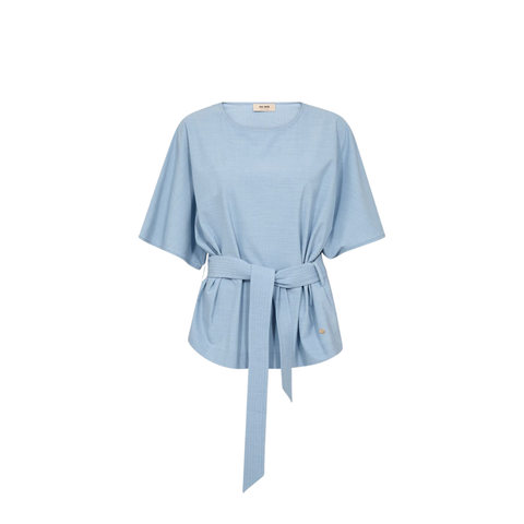 Med sine vidt udsvingende 3/4-ærmer og rund halsudskæring får du et både moderne og tidløst look, der udstråler lethed og personlig stil. Det medfølgende bindebånd kan bruges til at fremhæve taljen og give blusen et mere markeret, feminin udtryk, men kan også bindes løst for et mere afslappet look – alt efter humør og anledning.