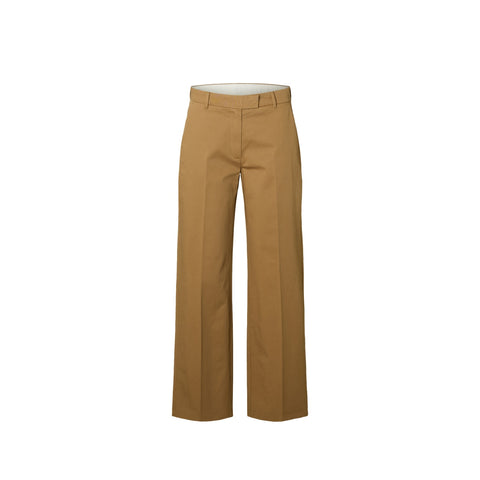 Disse bukser byder på en bred benpasform, der giver både komfort og bevægelsesfrihed. Med en midtalje og lynlåslukning er de designet til at sidde godt samtidig med, at de er nemme at tage af og på. Farven, kaldet Ermine, er en lys brun nuance, der passer smukt til vinterens kollektion. Bukserne er fremstillet af 100% økologisk bomuld, hvilket sikrer en mere bæredygtig produktion uden skadelige kemikalier. Denne type bomuld bidrager til at beskytte naturressourcer og biodiversitet. De er designet til kvinder og perfekt til afslappet brug, hvor tidløs elegance kombineres med komfort.
