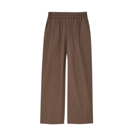 Jasmine Pants er et par vide bukser med et behageligt fit og en lettere cropped benlængde lavet i 100% økologisk bomuld. Bukserne har elastisk talje og sidelommer.